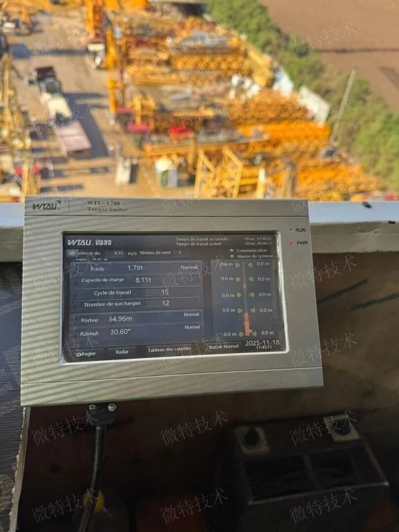 該企業(yè)擁有龐大的工程設(shè)備群,對(duì)安全系統(tǒng)的適配性、穩(wěn)定性及安裝服務(wù)質(zhì)量均提出了高要求。為確保項(xiàng)目成功落地,微特技術(shù)服務(wù)工程師親赴現(xiàn)場(chǎng),與本地代理工程師緊密協(xié)作,全程參與系統(tǒng)安裝指導(dǎo)與調(diào)試工作。針對(duì)塔吊作業(yè)的核心安全需求,微特提供的一體化安全系統(tǒng)集成傳感技術(shù)與智能算法,具備雙重安全保障能力:一方面可實(shí)時(shí)動(dòng)態(tài)監(jiān)測(cè)塔吊運(yùn)行狀態(tài),精準(zhǔn)識(shí)別作業(yè)區(qū)域內(nèi)的安全風(fēng)險(xiǎn),有效預(yù)防碰撞事故發(fā)生;另一方面能持續(xù)追蹤吊載力矩?cái)?shù)據(jù),確保吊裝作業(yè)全程處于安全負(fù)荷范圍內(nèi),從源頭規(guī)避超載引發(fā)的設(shè)備故障與安全隱患。