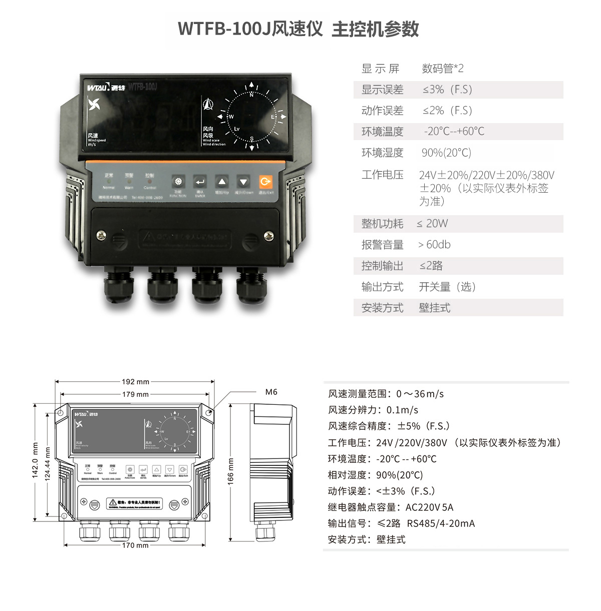 WTFB-100J風速報警儀監(jiān)測風速范圍為0~36m/s。產品穩(wěn)定性高、抗干擾能力強,檢測精度高,風杯機械強度高、抗風能力強,顯示器機箱設計新穎獨特,堅固耐用,安裝時免調試,適用于不同工作環(huán)境的大風監(jiān)測報警及控制。